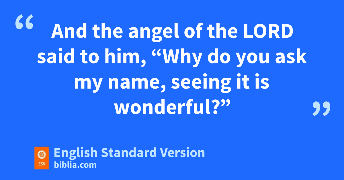 15 Manoah said to the angel of the Lord, “Please let us detain you and hprepare a young goat for you.” 16 And the angel of the Lord said to Manoah, “If you detain me, I will not eat of your food. But if you prepare a burnt offering, then offer it to the Lord.” (For Manoah did not know that he was the angel of the Lord.) 17 And Manoah said to the angel of the Lord, i“What is your name, so that, when your words come true, we may honor you?” 18 And the angel of the Lord said to him, j“Why do you ask my name, seeing kit is wonderful?” 19 So lManoah took the young goat with the grain offering, and offered it on the rock to the Lord, to the one who works1 wonders, and Manoah and his wife were watching. 20 And when the flame went up toward heaven from the altar, the angel of the Lord went up in the flame of the altar. Now Manoah and his wife were watching, mand they fell on their faces to the ground.