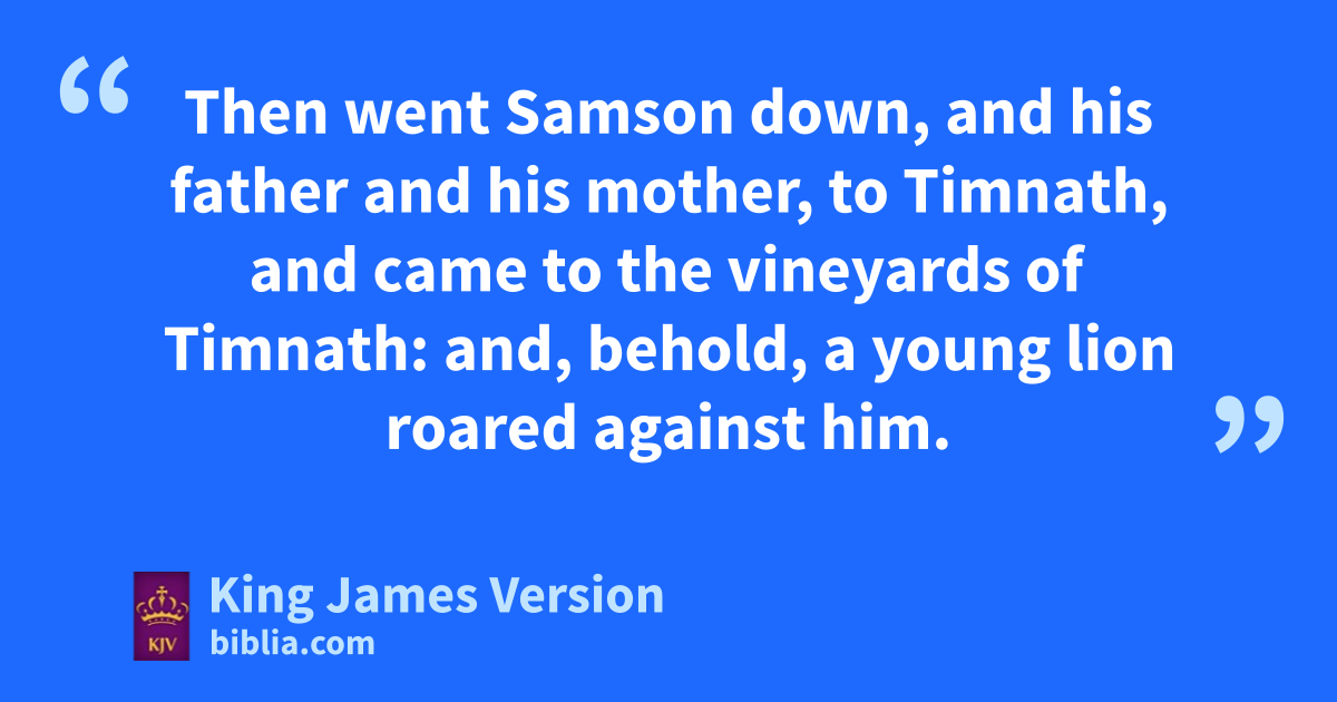 14 *And Samson went down ato Timnath, and saw a woman in Timnath of the daughters of the Philistines. 2 And he came up, and told his father and his mother, and said, I have seen a woman in Timnath of the daughters of the Philistines: now therefore bget her for me to wife. 3 Then his father and his mother said unto him, Is there never a woman among the daughters of cthy brethren, or among all my people, that thou goest to take a wife of the duncircumcised Philistines? And Samson said unto his father, Get her for me; for †she pleaseth me well. 4 But his father and his mother knew not that it was eof the Lord, that he sought an occasion against the Philistines: for at that time fthe Philistines had dominion over Israel. 5 Then went Samson down, and his father and his mother, to Timnath, and came to the vineyards of Timnath: and, behold, ga young lion roared †against him. 6 And hthe Spirit of the Lord came mightily upon him, and he rent him as he would have rent a kid, and he had nothing in his hand: but he told not his father or his mother what he had done. 7 And he went down, and talked with the woman; and she pleased Samson well.