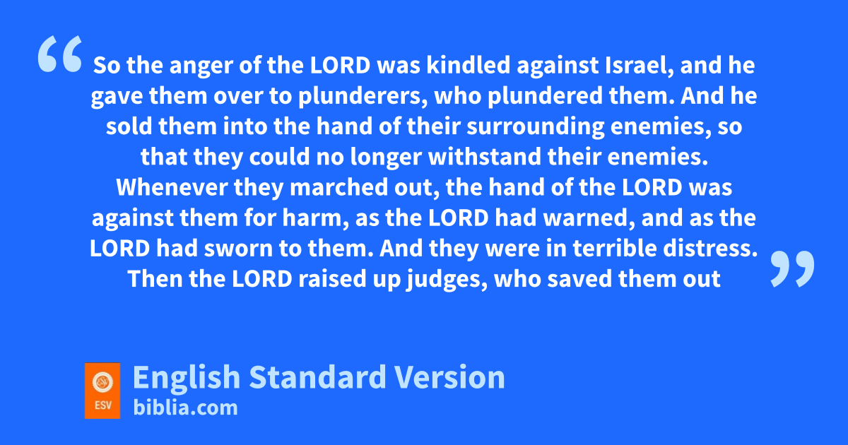 11 sAnd the people of Israel did what was evil in the sight of the Lord and served the Baals. 12 tAnd they abandoned the Lord, the God of their fathers, who had brought them out of the land of Egypt. uThey went after other gods, from among the gods of the peoples who were around them, and vbowed down to them. wAnd they provoked the Lord to anger. 13 They abandoned the Lord xand served the Baals and the Ashtaroth. 14 ySo the anger of the Lord was kindled against Israel, and he zgave them over to plunderers, who plundered them. aAnd he sold them into the hand of their surrounding enemies, bso that they could no longer withstand their enemies. 15 Whenever they marched out, the hand of the Lord was against them for harm, as the Lord had warned, cand as the Lord had sworn to them. And they were in terrible distress.