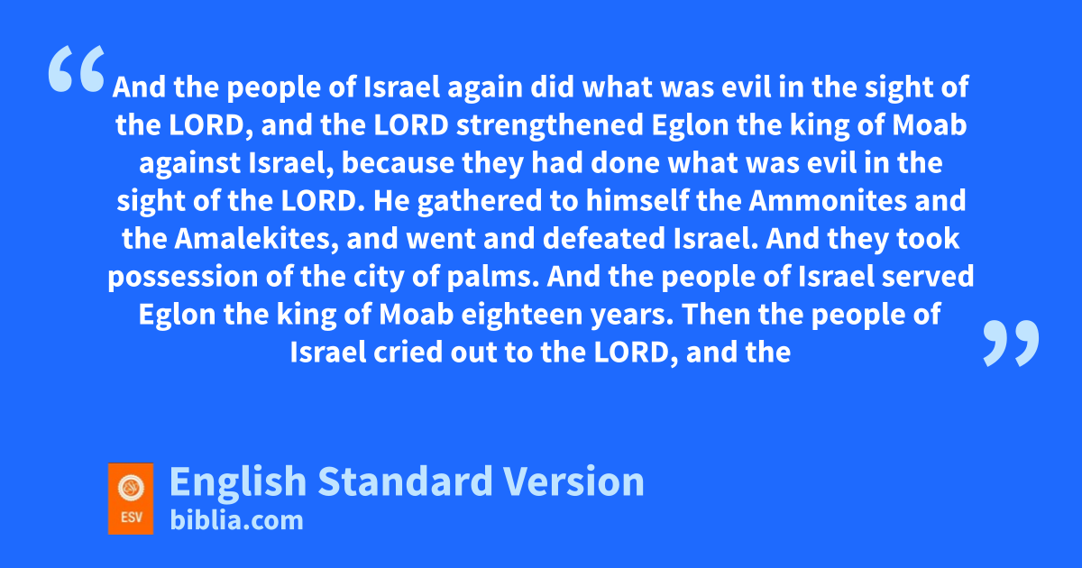 12 dAnd the people of Israel again did what was evil in the sight of the Lord, and the Lord strengthened Eglon ethe king of Moab against Israel, because they had done what was evil in the sight of the Lord. 13 He gathered to himself the Ammonites and the fAmalekites, and went and defeated Israel. And they took possession of gthe city of palms. 14 And the people of Israel served Eglon the king of Moab eighteen years.