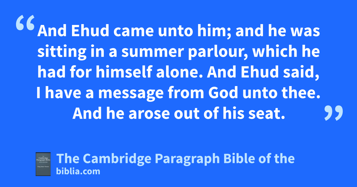 12 q* And the children of Israel did evil again in the sight of the Lord: and the Lord strengthened Eglon rthe king of Moab against Israel, because they had done evil in the sight of the Lord. 13 And he gathered unto him the children of sAmmon and tAmalek, and went and smote Israel, and possessed uthe city of palm trees. 14 So the children of Israel vserved Eglon the king of Moab eighteen years. 15 * But when the children of Israel wcried unto the Lord, the Lord raised them up a deliverer, Ehud the son of Gera, * a Benjamite, a man * lefthanded: and by him the children of Israel sent xa present unto Eglon the king of Moab. 16 But Ehud made him a dagger which had two edges, of a cubit length; and he did gird it under his raiment upon his right thigh. 17 And he brought the present unto Eglon king of Moab: and Eglon was a very fat man. 18 And when he had made an end to offer the present, he sent away the people ythat bare the present. 19 But he himself turned again zfrom the * quarries that were by Gilgal, and said, I have a secret errand unto thee, O king: who said, Keep silence. And all that stood by him went out from him. 20 And Ehud came unto him; and he was sitting in * a summer parlour, which he had for himself alone. And Ehud said, I have a message from God unto thee. And he arose out of his seat. 21 And Ehud put forth his left hand, and took the dagger from his right thigh, and thrust it into his belly: 22 and the haft also went in after the blade; and the fat closed upon the blade, so that he could not draw the dagger out of his belly; and * the dirt came out. 23 Then Ehud went forth through the porch, and ashut the doors of the parlour upon him, and blocked them. 24 When he was gone out, his servants came; and when they saw that behold, the doors of the parlour were locked, they said, Surely he * covereth his feet in his summer chamber. 25 And they tarried till they were ashamed: and behold, he opened not the doors of the parlour; therefore they took a key, and opened them: and behold, their lord was fallen down dead on the earth. 26 And Ehud escaped while they ctarried, and passed beyond the dquarries, and escaped unto Seirath. 27 And it came to pass, when he was come, that ehe blew a trumpet in the fmountain of Ephraim, and the children of Israel went down with him from the mount, and he before them. 28 And he said unto them, Follow after me: for gthe Lord hath delivered your enemies the Moabites into your hand. And they went down after him, and took hthe fords of Jordan toward Moab, and suffered not a man to pass over. 29 And they slew of Moab at that time about ten thousand men, all * lusty, and all men of valour; and there escaped not a man. 30 So Moab was subdued that day under the hand of Israel. And ithe land had rest fourscore years.