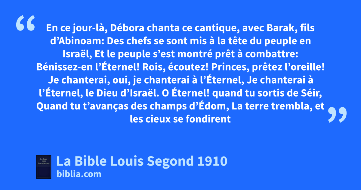 1En ce jour-là, Débora chanta ce cantique, avec Barak, fils d’Abinoam: