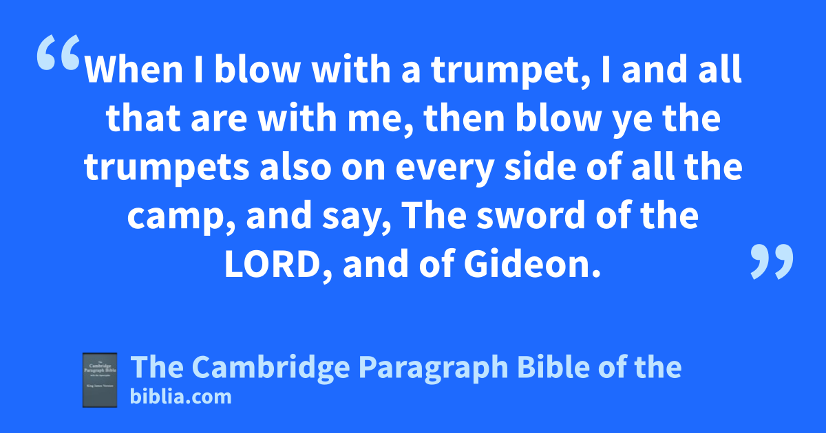 9 And it came to pass the same inight, that the Lord said unto him, Arise, get thee down unto the host; for jI have delivered it into thine hand. 10 But if thou fear to go down, go thou with Phurah thy servant down to the host: 11 And thou shalt khear what they say; and afterward shall thine hands be strengthened to go down unto the host. Then went he down with Phurah his servant unto the outside of the * armed men that were in the host. 12 And the Midianites and the Amalekites and lall the children of the east lay along hin the valley llike grasshoppers for multitude; and their camels were without number, mas the sand by the sea side for multitude. 13 And when Gideon was come, behold, there was a man that told a dream unto his fellow, and said, Behold, I dreamed a dream, and lo, a cake of barley bread tumbled into the host of Midian, and came unto a tent, and smote it that it fell, and overturned it, that the tent lay along. 14 And his fellow answered and said, This is nothing else save the sword of Gideon the son of Joash, a man of Israel: for into his hand hath God delivered Midian, and all the host. 15 And it was so, when Gideon heard the telling of the dream, and * the interpretation thereof, that he worshipped, and returned into the host of Israel, and said, Arise; for the Lord hath delivered into your hand the host of Midian. 16 And he divided the three hundred men into three companies, and he put * a trumpet in every man’s hand, with empty pitchers, and * lamps within the pitchers. 17 And he said unto them, Look on me, and do likewise: and behold, when I come to the outside of the camp, it shall be that, as I do, so shall ye do. 18 When I blow with a trumpet, I and all that are with me, then blow ye the trumpets also on every side of all the camp, and say, nThe sword of the Lord, and of Gideon. 19 So Gideon, and othe hundred men that were with him, came unto the outside of the camp in the beginning of the middle watch; and they had but newly set the watch: and they blew the trumpets, and brake the pitchers that were in their hands. 20 And the three companies blew the trumpets, and brake the pitchers, and held the lamps in their left hands, and the trumpets in their right hands to blow withal: and they cried, The sword of the Lord, and of Gideon. 21 And they pstood every man qin his place round about the camp: and rall the host ran, and cried, and fled. 22 And the three hundred sblew the trumpets, and tthe Lord set uevery man’s sword against his fellow, even throughout all the host: and the host fled to Beth-shittah * in wZererath, and to the * border of xAbel-meholah, unto Tabbath. 23 And the men of Israel ygathered themselves together zout of Naphtali, and out of Asher, and out of all Manasseh, and pursued after the Midianites.