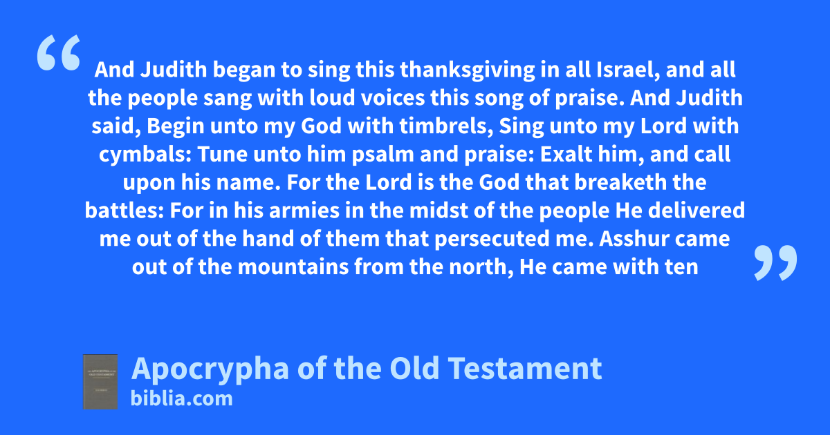 161 And Judith began to sing this thanksgiving in all Israel, and all the people sang with loud voices this song of praise. 2 And Judith said,