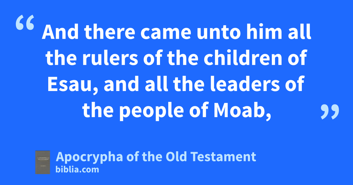 16 And their words were pleasing in the sight of Holofernes and in the sight of all his servants; and he appointed to do as they had spoken. 17 And the army of the children of Ammon removed, and with them five thousand of the children of Asshur, and they encamped in the valley, and seized upon the waters and the fountains of the waters of the children of Israel. 18 And the children of Esau went up with the children of Ammon, and encamped in the hill country over against Dothaim: and they sent some of them toward the south, and toward the east, over against Ekrebel, which is near unto Chusi, that is upon the brook Mochmur; and the rest of the army of the Assyrians encamped in the plain, and covered all the face of the land; and their tents and baggage were pitched upon it in a great crowd, and they were an exceeding great multitude.
