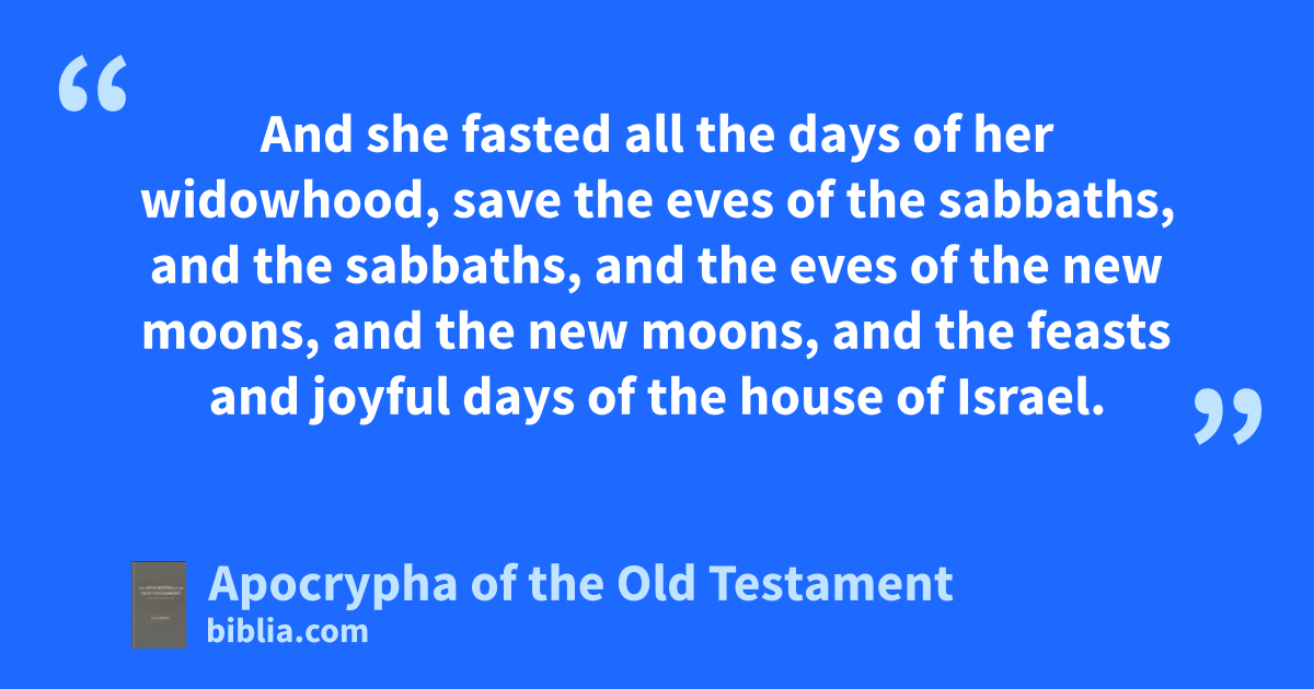 81 And in those days Judith heard thereof, the daughter of Merari, the son of Ox, the son of Joseph, the son of Oziel, the son of Elkiah, the son of Ananias, the son of Gideon, the son of Raphaim, the son of Ahitub, the son of Elihu, the son of Eliab, the son of Nathanael, the son of Salamiel, the son of Salasadai, the son of Israel. 2 And her husband was Manasses, of her tribe and of her family, and he died in the days of barley harvest. 3 For he stood over them that bound sheaves in the field, and the heat came upon his head, and he fell on his bed, and died in his city Bethulia: and they buried him with his fathers in the field which is between Dothaim and Balamon. 4 And Judith was a widow in her house three years and four months. 5 And she made her a tent upon the roof of her house, and put on sackcloth upon her loins; and the garments of her widowhood were upon her. 6 And she fasted all the days of her widowhood, save the eves of the sabbaths, and the sabbaths, and the eves of the new moons, and the new moons, and the feasts and joyful days of the house of Israel. 7 And she was of a goodly countenance, and exceeding beautiful to behold: and her husband Manasses had left her gold, and silver, and menservants, and maidservants, and cattle, and lands; and she remained upon them. 8 And there was none that gave her an evil word; for she feared God exceedingly.