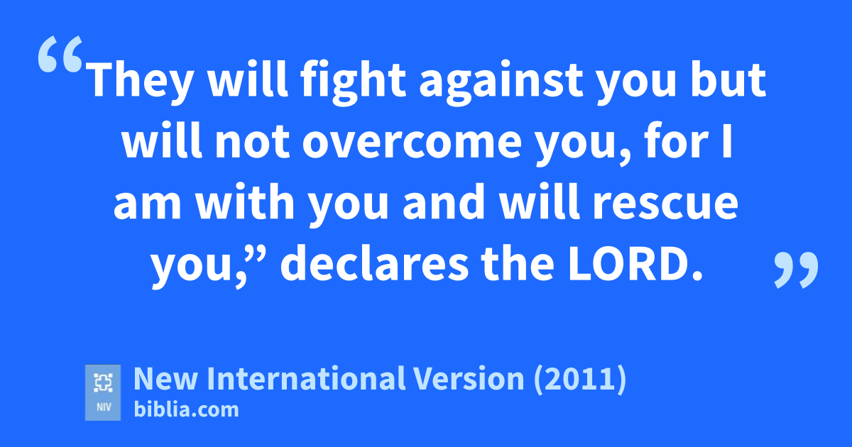 17 “Get yourself ready! Stand up and sayh to them whatever I command you. Do not be terrifiedi by them, or I will terrify you before them. 18 Today I have made youj a fortified city, an iron pillar and a bronze wall to stand against the whole land—against the kings of Judah, its officials, its priests and the people of the land. 19 They will fight against you but will not overcomek you, for I am with youl and will rescuem you,” declares the Lord.