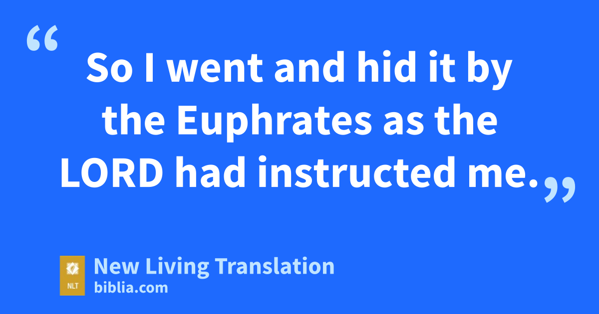 3 Then the Lord gave me another message: 4 “Take the linen loincloth you are wearing, and go to the Euphrates River.* Hide it there in a hole in the rocks.” 5 So I went and hid it by the Euphrates as the Lord had instructed me.