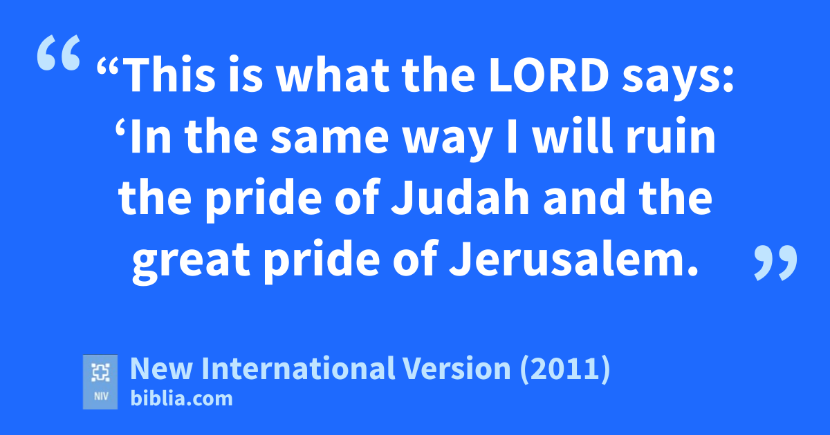 8 Then the word of the Lord came to me: 9 “This is what the Lord says: ‘In the same way I will ruin the pride of Judah and the great pridey of Jerusalem. 10 These wicked people, who refuse to listenz to my words, who follow the stubbornness of their heartsa and go after other godsb to serve and worship them,c will be like this belt—completely useless!d 11 For as a belt is bound around the waist, so I bound all the people of Israel and all the people of Judah to me,’ declares the Lord, ‘to be my people for my renowne and praise and honor.f But they have not listened.’g
