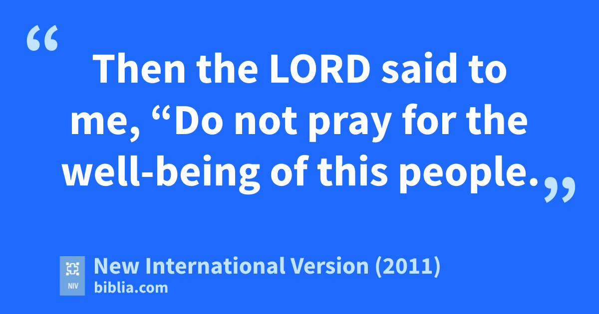 11 Then the Lord said to me, “Do not praym for the well-being of this people. 12 Although they fast, I will not listen to their cry;n though they offer burnt offeringso and grain offerings,p I will not acceptq them. Instead, I will destroy them with the sword,r famines and plague.”t