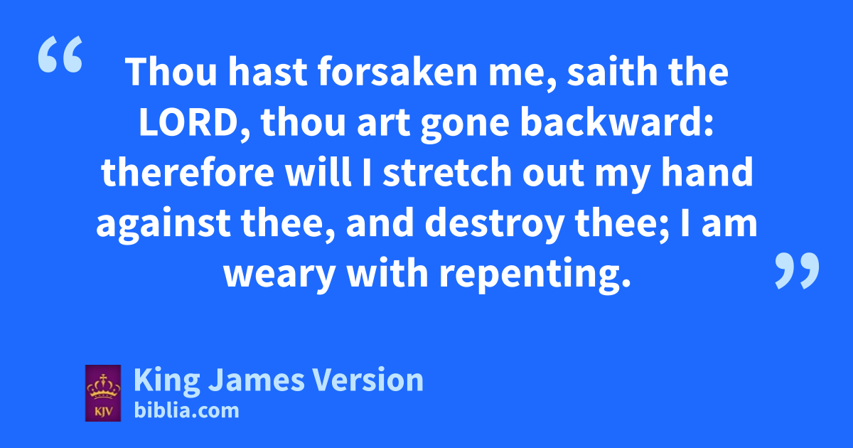 15 Then said the Lord unto me, aThough bcMoses and bdSamuel astood before me, yet my mind could not be toward this people: cast them out of my sight, and let them go forth. 2 And it shall come to pass, if they say unto thee, Whither shall we go forth? then thou shalt tell them, Thus saith the Lord; eSuch as are for death, to death; and such as are for the sword, to the sword; and such as are for the famine, to the famine; and such as are for the captivity, to the captivity. 3 And fI will appoint over them four †kinds, saith the Lord: the sword to slay, and the dogs to tear, and gthe fowls of the heaven, and the beasts of the earth, to devour and destroy. 4 And †I will cause them to be removed into all kingdoms of the earth, because of hManasseh the son of Hezekiah king of Judah, for that which he did in Jerusalem. 5 For who shall have pity upon thee, O Jerusalem? or iwho shall bemoan thee? or who shall go aside †to ask how thou doest? 6 kThou hast forsaken me, saith the Lord, thou art lgone backward: therefore will I stretch out my hand against thee, and destroy thee; mI am weary with repenting. 7 And I will nfan them with oa fan in the gates of the land; I will bereave them pof ||children, I will destroy my people, since qthey return not from their ways. 8 Their widows are increased to me rabove the sand of the seas: I have brought upon them ||against the mother of the young men a spoiler sat noonday: I have caused him to fall upon it suddenly, and tterrors upon the city. 9 uShe that hath borne seven languisheth: vshe hath given up the ghost; wher sun is gone down while it was yet day: she hath been ashamed and confounded: and the residue of them will I deliver to the sword before their enemies, saith the Lord.