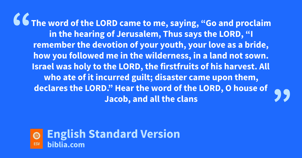 2 The word of the Lord came to me, saying, 2 “Go and proclaim in the hearing of Jerusalem, Thus says the Lord,