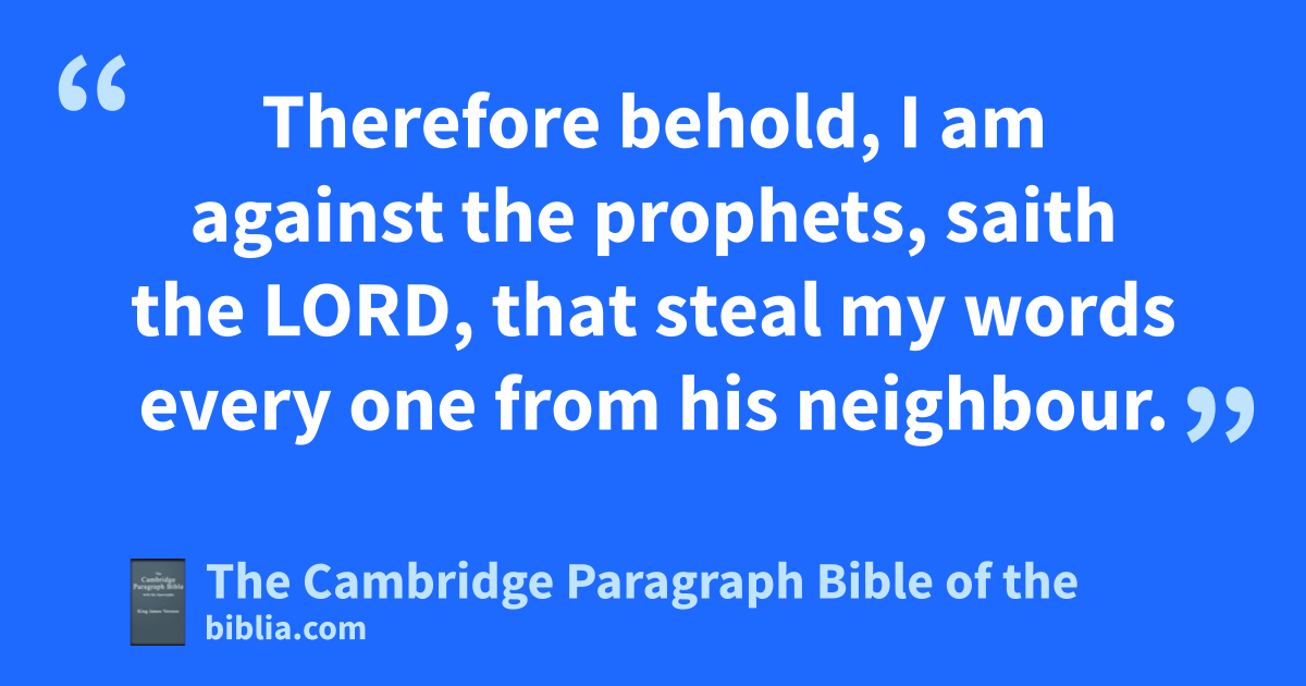 15 Therefore thus saith the Lord of hosts concerning ithe prophets; oBehold, I will feed them with pwormwood, oand make them drink qthe water of gall: for from the prophets of Jerusalem is * profaneness gone forth into all the land. 16 Thus saith the Lord of hosts, Hearken not unto the words of the prophets that prophesy unto you: they make you vain: rthey speak a vision of their own heart, and not out of the mouth of the Lord. 17 They say still unto them that despise me, The Lord hath said, sYe shall have peace; and they say unto every one that walketh after the * imagination of his own heart, tNo evil shall come upon you. 18 For uwho hath stood in the * counsel of the Lord, and hath perceived and heard his word? who hath marked his word, and heard it? 19 wBehold, a whirlwind of the Lord is gone forth in fury, even xa grievous whirlwind: wit shall fall grievously upon the head of the wicked. 20 yThe anger of the Lord shall not return, until he have executed, and till he have performed the thoughts of his heart: yzin the latter days ye shall consider it perfectly. 21 aI have not sent these prophets, yet they ran: I have not spoken to them, yet they prophesied. 22 But if they had bstood in my counsel, and had caused my people to hear my words, then they should have cturned them from their evil way, and from dthe evil of their doings. 23 Am I a God at hand, saith the Lord, and enot a God afar off? 24 fCan any hide himself in secret places ethat I shall not see him? saith the Lord. gDo not I fill heaven and earth? saith the Lord. 25 I have heard what the prophets said, hthat prophesy lies in my name, saying, I ihave dreamed, I have dreamed. 26 How long shall this be in the heart of kthe prophets that prophesy lies? yea, they are lprophets of the deceit of their own heart; 27 which think to cause my people to forget my name i by their dreams which they tell every man to his neighbour, mas their fathers have forgotten my name for Baal. 28 The prophet * that hath a dream, ilet him tell a dream; and he that hath my word, let him speak my word faithfully. What is the chaff to the wheat? saith the Lord. 29 nIs not my word like as a fire? saith the Lord; and like a hammer that obreaketh the rock in pieces? 30 Therefore behold, pI am against the prophets, saith the Lord, that steal my words every one from his neighbour. 31 Behold, I am against the prophets, saith the Lord, * that use their tongues, and say, He saith. 32 Behold, I am against them ithat prophesy false dreams, saith the Lord, and do tell them, and qcause my people to err by their lies, and by their rlightness; syet I sent them not, nor commanded them: therefore they shall not profit this people at all, saith the Lord.