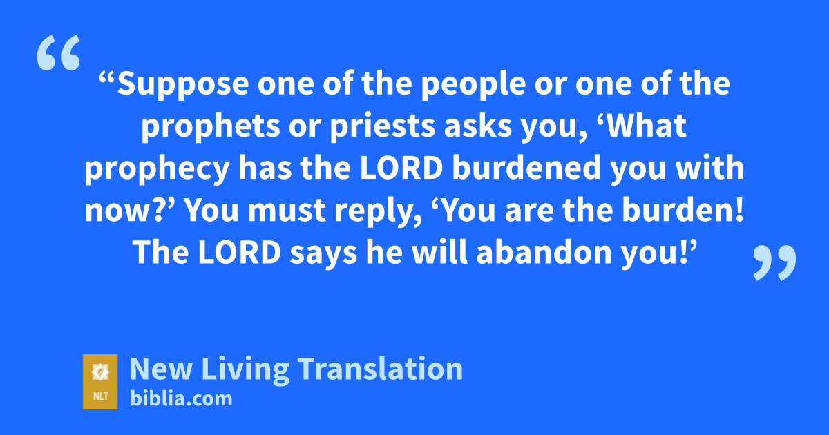 33 “Suppose one of the people or one of the prophets or priests asks you, ‘What prophecy has the Lord burdened you with now?’ You must reply, ‘You are the burden!* The Lord says he will abandon you!’