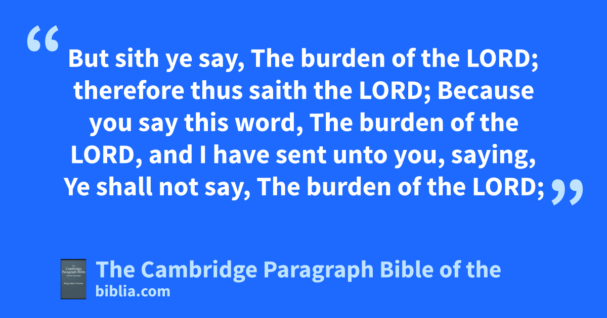 33 And when this people, or tthe prophet, or a priest, shall ask thee, saying, What is uthe burden of the Lord? thou shalt then say unto them, What burden? vI will even forsake you, saith the Lord. 34 And as for tthe prophet, and the priest, and the people, that shall say, uThe burden of the Lord, I will even * punish that man and his house. 35 Thus shall ye say every one to his neighbour, and every one to his brother, wWhat hath the Lord answered? and, What hath the Lord spoken? 36 And the burden of the Lord shall ye mention no more: for every man’s word shall be his burden; for ye have perverted the words of xthe living God, of the Lord of hosts our God. 37 Thus shalt thou say to the prophet, wWhat hath the Lord answered thee? and, What hath the Lord spoken? 38 But sith ye say, The burden of the Lord; therefore thus saith the Lord; Because you say this word, The burden of the Lord, and I have sent unto you, saying, Ye shall not say, The burden of the Lord; 39 therefore behold, I, even I, ywill utterly forget you, and vI will forsake you, and the city that I gave you and your fathers, and cast you out of my presence: 40 and I will bring an everlasting reproach upon you, and za perpetual shame, which shall not be forgotten.
