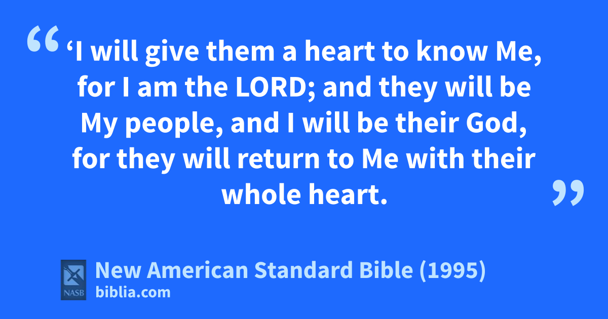 7 ‘I will give them a aheart to know Me, for I am the Lord; and they will be bMy people, and I will be their God, for they will creturn to Me with their whole heart.