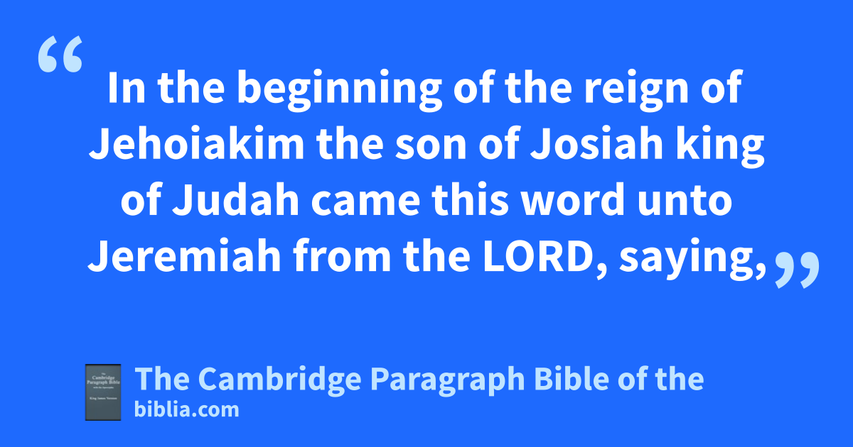 XXVII. aIn the beginning of the reign of bJehoiakim the son of Josiah king of Judah came this word unto Jeremiah from the Lord, saying, 2 Thus * saith the Lord to me; cMake thee bonds and dyokes, and put them upon thy neck, 3 and send them to the king of eEdom, and to the king of eMoab, and to the king of the eAmmonites, and to the king of eTyrus, and to the king of eZidon, by the hand of the messengers which come to Jerusalem bunto Zedekiah king of Judah; 4 and command them * to say unto their masters, Thus saith the Lord of hosts, the God of Israel; Thus shall ye say unto your masters; 5 fI have made the earth, the man and the beast that are upon the ground, by my great power and gby my outstretched arm, and hhave given it unto whom it seemed meet unto me. 6 And now have I given all these lands into the hand of Nebuchadnezzar the king of Babylon, imy servant; and kthe beasts of the field have I given him also to serve him. 7 lAnd all nations shall serve him, and mhis son, and nhis son’s son, lountil the very time of his land come: and then pmany nations and great kings shall serve themselves of him. 8 And it shall come to pass, that the nation and kingdom which will not serve the same Nebuchadnezzar the king of Babylon, and qthat will not put their neck under the yoke of the king of Babylon, that nation will I punish, saith the Lord, rwith the sword, and with the famine, and with the pestilence, until I have consumed them by his hand. 9 vTherefore hearken not ye to your prophets, nor to syour diviners, nor to your * dreamers, nor to your tenchanters, nor to your usorcerers, vwhich speak unto you, saying, Ye shall not serve the king of Babylon: 10 vwfor they prophesy a lie unto you, to remove you far from your land; and that I should drive you out, and ye should perish. 11 But qthe nations that bring their neck under the yoke of the king of Babylon, and serve him, those will I let remain still in their own land, saith the Lord; and they shall till it, and dwell therein.