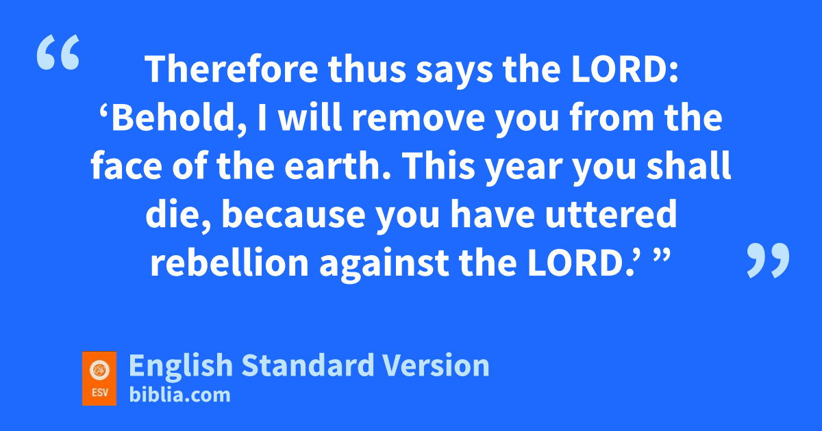12 Sometime after the prophet bHananiah had broken the yoke-bars from off the neck of Jeremiah the prophet, the word of the Lord came to Jeremiah: 13 “Go, tell Hananiah, ‘Thus says the Lord: You have broken wooden bars, but you have made in their place bars of iron. 14 For thus says the Lord of hosts, the God of Israel: I have put upon the neck of all these nations can iron yoke to serve Nebuchadnezzar king of Babylon, dand they shall serve him, efor I have given to him even the beasts of the field.’ ” 15 And Jeremiah the prophet said to the prophet Hananiah, “Listen, Hananiah, fthe Lord has not sent you, gand you have made this people trust in a lie. 16 Therefore thus says the Lord: ‘Behold, I will remove you from the face of the earth. This year you shall die, hbecause you have uttered rebellion against the Lord.’ ”