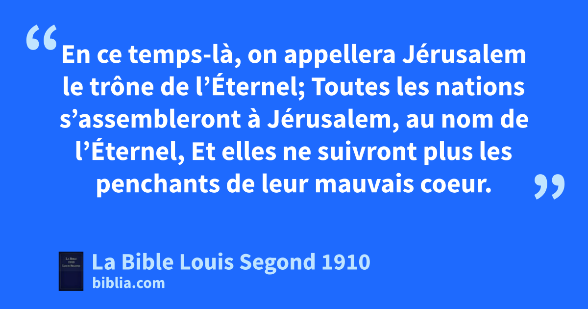 17En ce temps-là, on appellera Jérusalem le trône de l’Éternel;