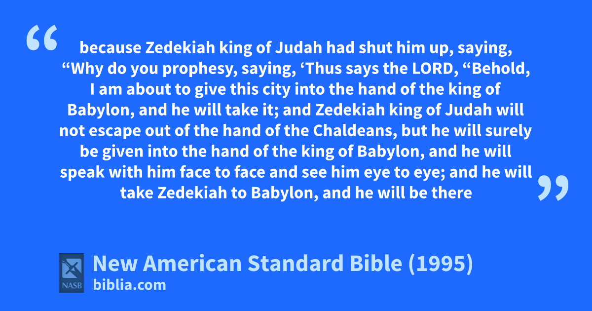 3 because Zedekiah king of Judah had ashut him up, saying, “Why do you bprophesy, saying, ‘cThus says the Lord, “Behold, I am about to dgive this city into the hand of the king of Babylon, and he will take it;