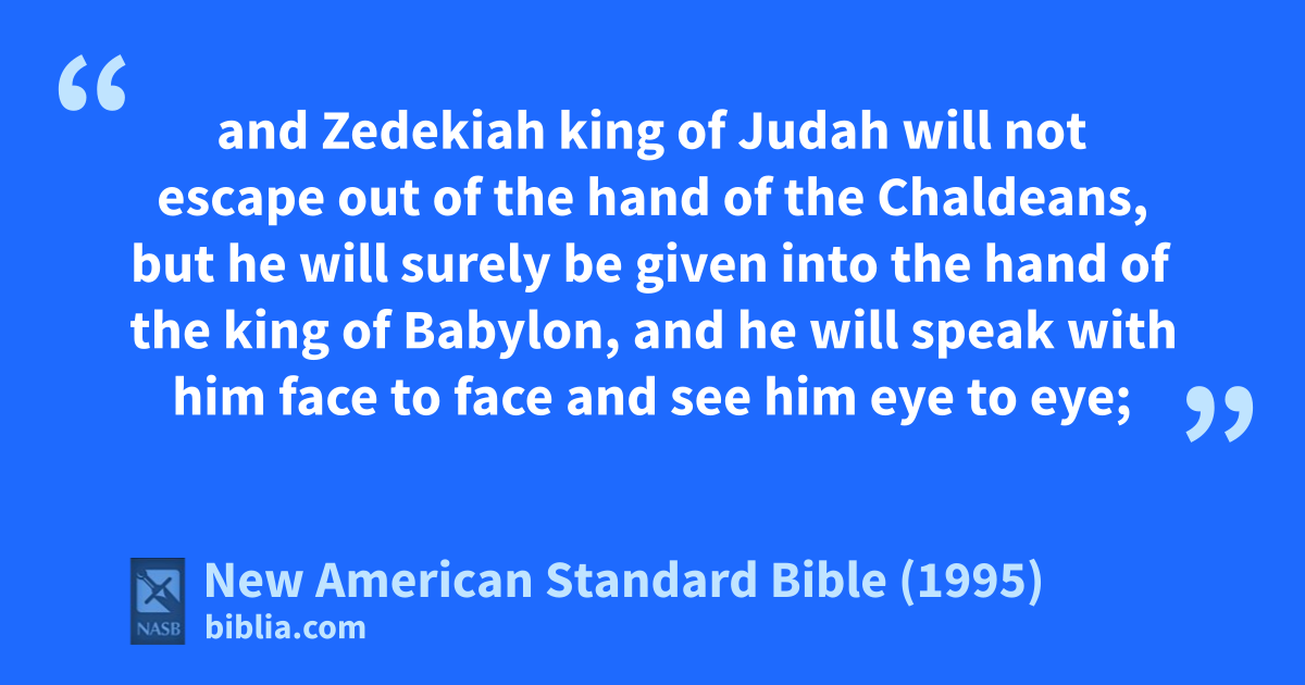 4 and Zedekiah king of Judah will anot escape out of the hand of the Chaldeans, but he will surely be given into the hand of the king of Babylon, and he will bspeak with him 1face to face and see him eye to eye;