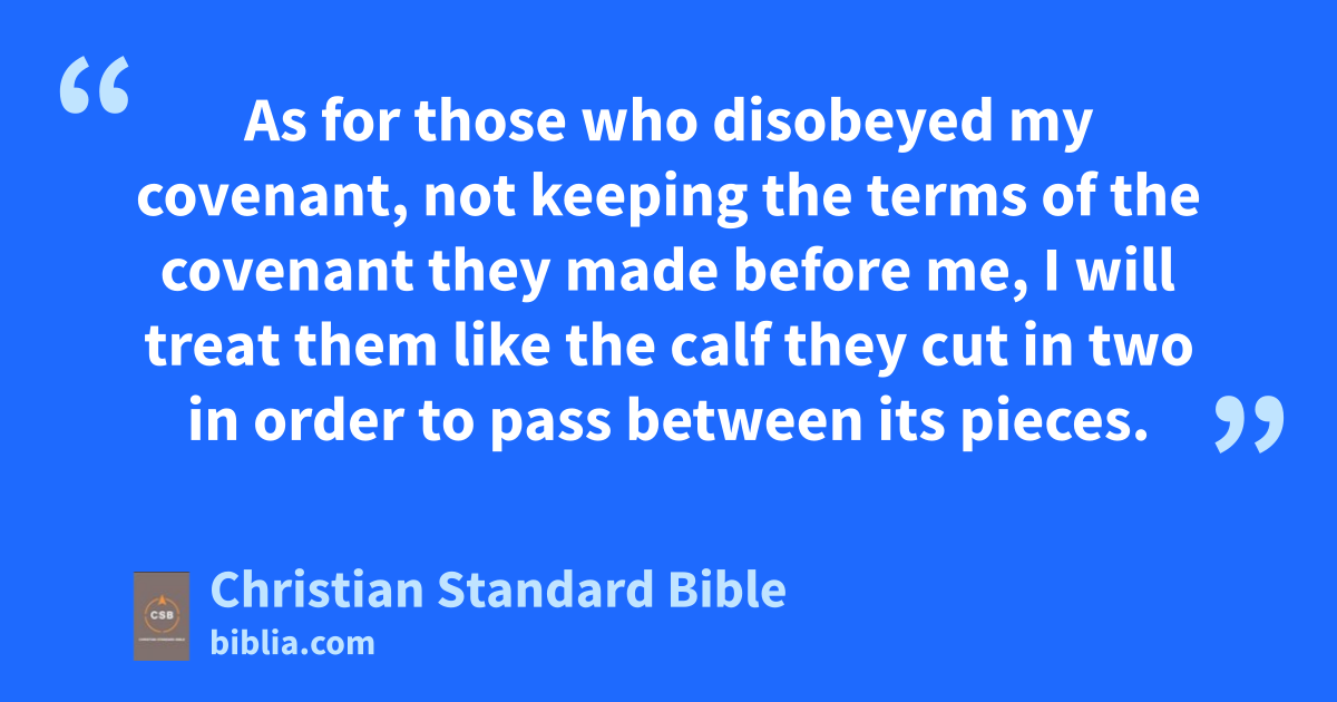 17 “Therefore, this is what the Lord says: You have not obeyed me by proclaiming freedom, each for his fellow Hebrew and for his neighbor.q I hereby proclaim freedom for your —this is the Lord’s declaration—to the sword, to plague, and to famine! I will make you a horror to all the earth’s kingdoms.s 18 As for those who disobeyed my covenant,t not keeping the terms of the covenant they made before me, I will treat them like the calf they cut in two in order to pass between its pieces.u 19 The officials of Judah and Jerusalem, the court officials, the priests, and all the people of the land who passed between the pieces of the calf—20 all these I will hand over to their enemies, to those who intend to take their life. Their corpses will become food for the birds of the sky and for the wild animals of the land.v 21 I will hand King Zedekiah of Judah and his officials over to their enemies, to those who intend to take their lives, to the king of Babylon’s army that is withdrawing. 22 I am about to give the command—this is the Lord’s declaration—and I will bring them back to this city. They will fight against it, capture it, and burn it.w I will make Judah’s cities a desolation, without inhabitant.”x