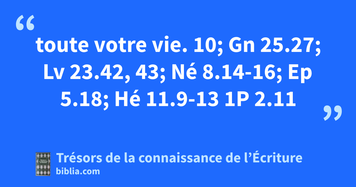 toute votre vie. 10; Gn 25.27; Lv 23.42, 43; Né 8.14-16; Ep 5.18; Hé 11.9-13 1P 2.11