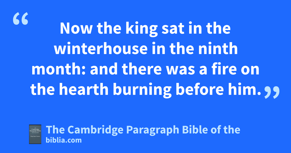 20 And they went in to the king into the court, but they laid up the roll ain the chamber of Elishama the scribe, and told all the words in the ears of the king. 21 So the king sent Jehudi to fet the roll: and he took it out of aElishama the scribe’s chamber. And Jehudi read it in the ears of the king, and in the ears of all the princes bwhich stood beside the king. 22 Now the king sat in cthe winterhouse din the ninth month: and there was a fire on the hearth burning before him. 23 And it came to pass, that when Jehudi had read three or four leaves, he cut it with the penknife, and cast it into the fire that was on the hearth, until all the roll was consumed in the fire that was on the hearth. 24 yYet they were not afraid, enor frent their garments, neither the king, nor any of his servants that heard all these words. 25 Nevertheless gElnathan and Delaiah and Gemariah hhad made intercession to the king that he would not burn the roll: but he would not hear them. 26 But the king commanded Jerahmeel the son * of Hammelech, and Seraiah the son of Azriel, and xShelemiah the son of Abdeel, ito take Baruch the scribe and Jeremiah the prophet: but the Lord hid them.
