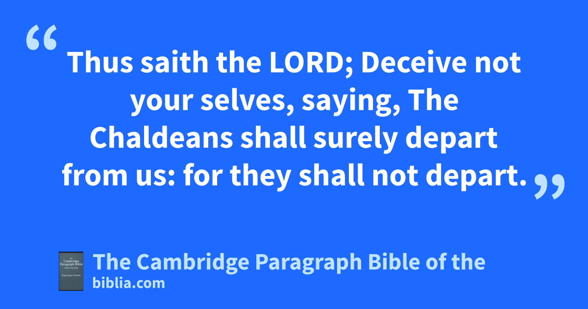 6 Then came the word of the Lord unto the prophet Jeremiah, saying, 7 Thus saith the Lord, the God of Israel; Thus shall ye say to the king of Judah, nthat sent you unto me to inquire of me; Behold, oPharaoh’s army, which is come forth to help you, oshall return to Egypt into their own land. 8 And pthe Chaldeans shall come again, and pfight against this city, and ptake it, and prburn it with fire. 9 Thus saith the Lord; Deceive not your * selves, saying, The Chaldeans shall surely depart from us: for they shall not depart. 10 qFor though ye had smitten the whole army of the Chaldeans that fight against you, and there remained but * wounded men among them, yet should they rise up every man in his tent, and rburn this city with fire.