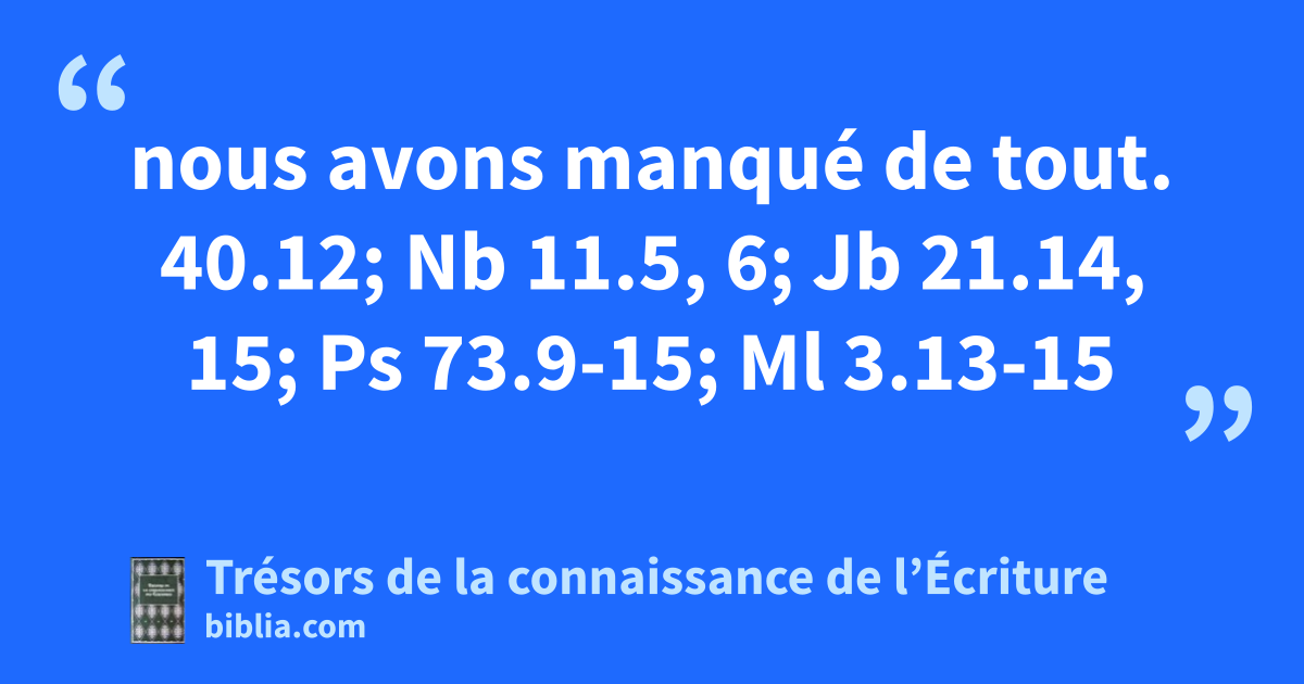 nous avons manqué de tout. 40.12; Nb 11.5, 6; Jb 21.14, 15; Ps 73.9-15; Ml 3.13-15