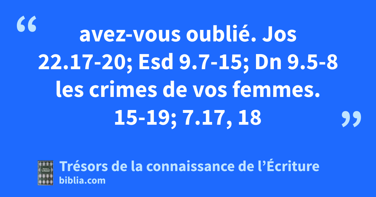 avez-vous oublié. Jos 22.17-20; Esd 9.7-15; Dn 9.5-8 les crimes de vos femmes. 15-19; 7.17, 18