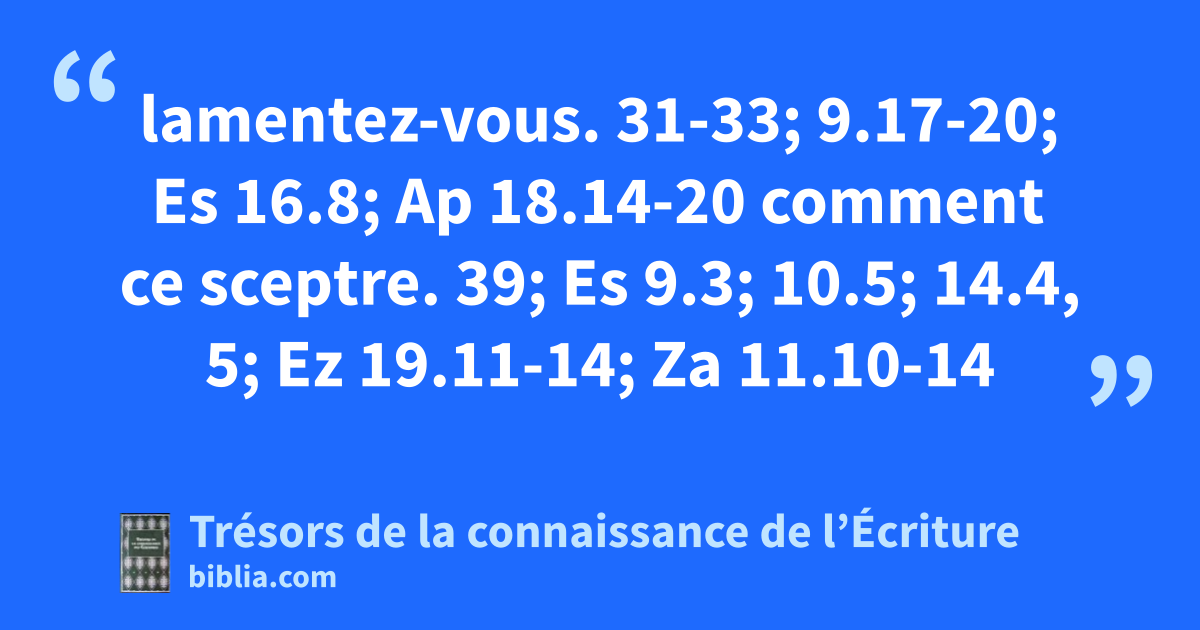 lamentez-vous. 31-33; 9.17-20; Es 16.8; Ap 18.14-20 comment ce sceptre. 39; Es 9.3; 10.5; 14.4, 5; Ez 19.11-14; Za 11.10-14