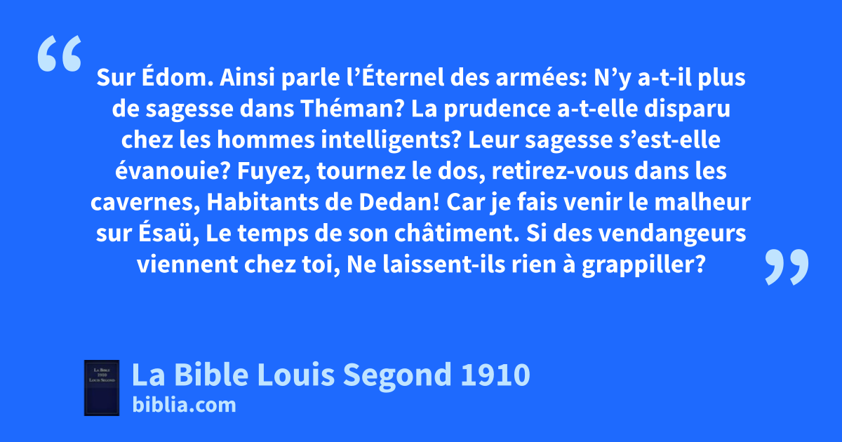 7Sur Édom. Ainsi parle l’Éternel des armées:
