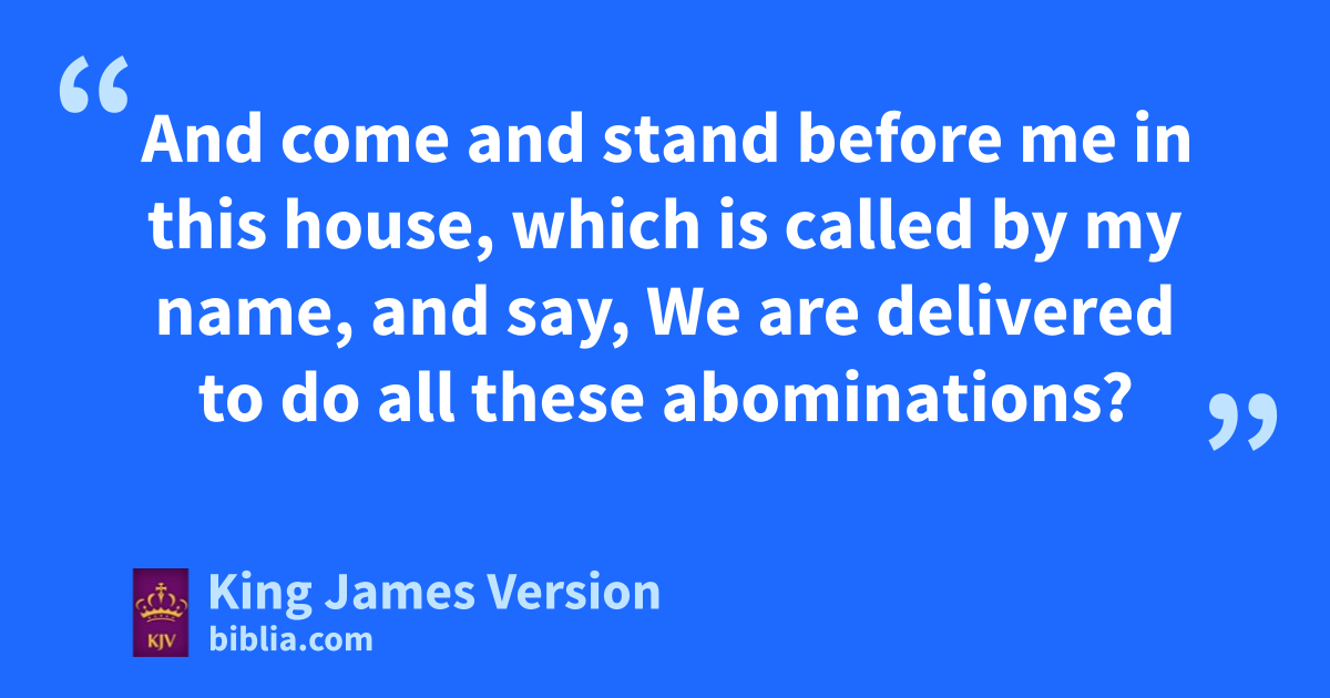 8 Behold, dye trust in mlying words, that cannot profit. 9 Will ye nsteal, murder, and commit adultery, and oswear falsely, and pburn incense unto Baal, and hwalk after other gods whom ye know not; 10 And come and stand before me in this house, †which is called by my name, and say, We are delivered to do all these abominations? 11 Is qthis house, which is called by my name, become ra den of srobbers in your eyes? Behold, even I have seen it, saith the Lord. 12 But go ye now unto tmy place which was in tuShiloh, vwhere I set my name at the first, and see wwhat I did to it for the wickedness of my people Israel. 13 And now, because ye have done all these works, saith the Lord, and I spake unto you, xrising up early and speaking, but ye heard not; and yI called you, but ye answered not; 14 Therefore will I do unto this house, which is called by my name, wherein ye trust, and unto zthe place which I gave to you and to your fathers, was I have done to Shiloh. 15 And I will cast you out of my sight, aas I have cast out all your brethren, even the whole seed of bEphraim. 16 cTherefore dpray not thou for this people, cneither lift up ecry nor prayer for them, neither fmake intercession to me: cfor I will not hear thee. 17 Seest thou not what they do in the cities of Judah and in the streets of Jerusalem? 18 The children gather wood, and the fathers kindle the fire, and the women gknead their dough, hto make cakes to the ||iqueen of heaven, and hkto pour out drink offerings unto other gods, lthat they may provoke me to anger. 19 mDo they provoke me to anger? saith the Lord: ndo they not provoke themselves oto the confusion of their own faces? 20 Therefore thus saith the Lord God; Behold, pmine anger and my fury shall be poured out upon this place, upon man, ppand upon beast, and upon the trees of the field, and upon the fruit of the ground; and it shall burn, pqand shall not be quenched.