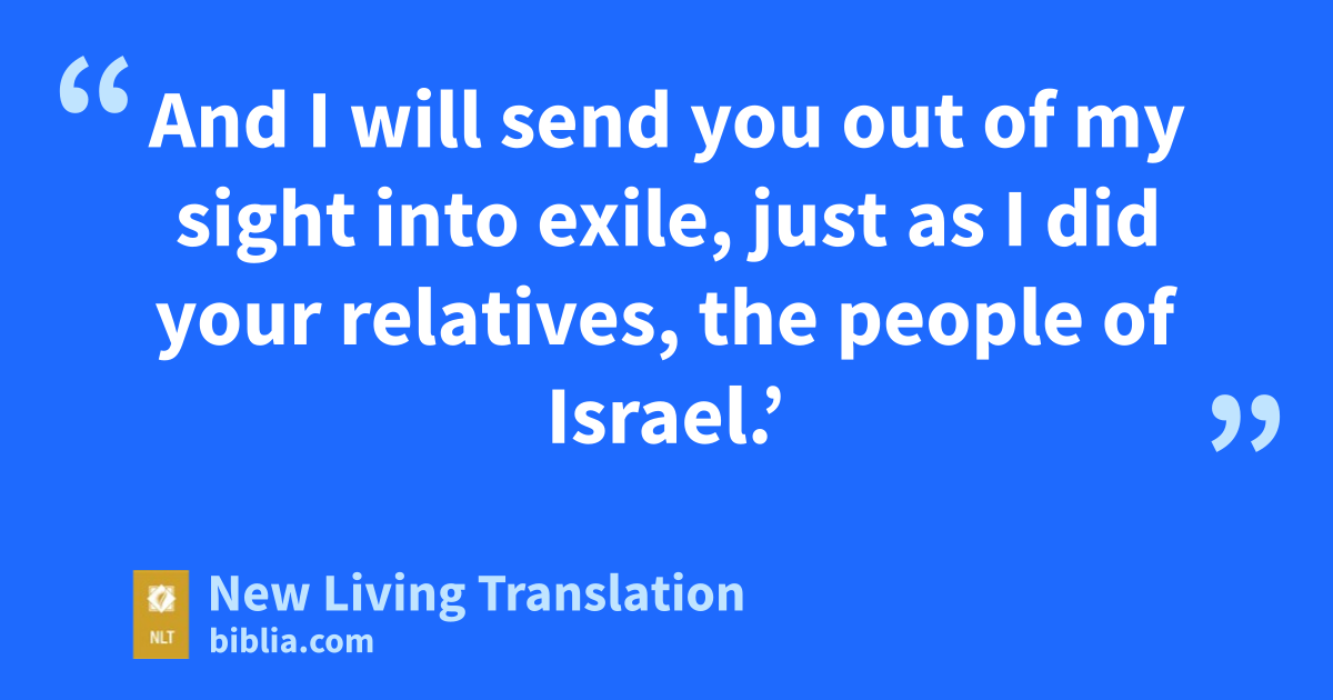 12 “ ‘Go now to the place at Shiloh where I once put the Tabernacle that bore my name. See what I did there because of all the wickedness of my people, the Israelites. 13 While you were doing these wicked things, says the Lord, I spoke to you about it repeatedly, but you would not listen. I called out to you, but you refused to answer. 14 So just as I destroyed Shiloh, I will now destroy this Temple that bears my name, this Temple that you trust in for help, this place that I gave to you and your ancestors. 15 And I will send you out of my sight into exile, just as I did your relatives, the people of Israel.* ’