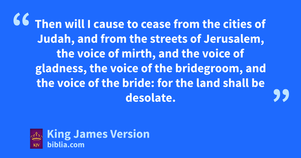 29 mCut off thine nhair, O Jerusalem, and cast it away, and take up a lamentation on ohigh places; for the Lord hath rejected and forsaken the generation of his wrath. 30 For the children of Judah have done evil in my sight, saith the Lord: pthey have set their abominations in the house qwhich is called by my name, pto pollute it. 31 rAnd they have built the high places of sTophet, which is in tthe valley of the son of Hinnom, uto burn their sons and their daughters in the fire; rvwhich I commanded them not, neither †came it into my heart. 32 wTherefore, behold, the days come, saith the Lord, that it shall no more be called sTophet, nor tthe valley of the son of Hinnom, but the valley of slaughter: xfor they shall bury in Tophet, till there be no place. 33 And ythe carcases of this people shall be meat for the fowls of the heaven, and for the beasts of the earth; zand none shall afray them away. 34 Then will bI cause to ccease from the cities of Judah, and from the streets of Jerusalem, cthe voice of mirth, and the voice of gladness, dthe voice of the bridegroom, and the voice of the bride: for ethe land shall be desolate.