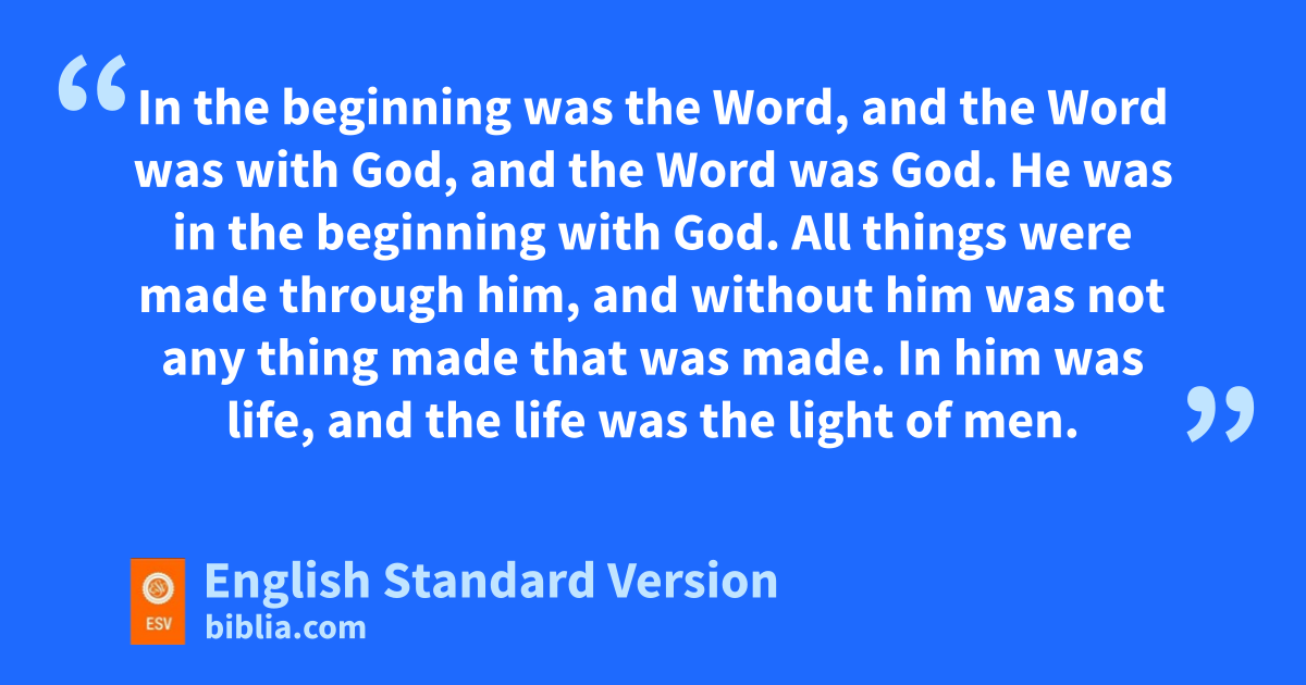 1 aIn the beginning was bthe Word, and cthe Word was with God, and dthe Word was God. 2 He was in the beginning with God. 3 eAll things were made through him, and without him was not any thing made that was made. 4 fIn him was life,1 and gthe life was the light of men. 5 hThe light shines in the darkness, and the darkness has not overcome it.