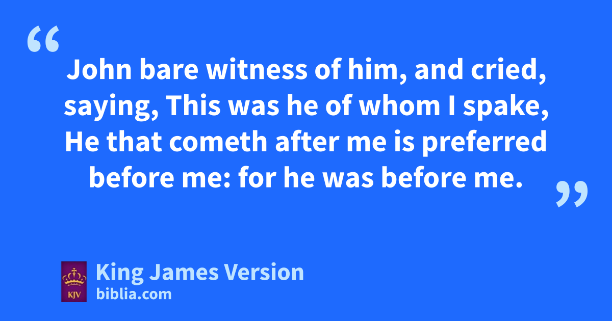 29 The next day John seeth Jesus coming unto him, and saith, Behold ithe Lamb of God, which j||taketh away the sin of the world. 30 kThis is he of whom I said, After me cometh a man which is preferred before me: for he was lbefore me. 31 And I knew him not: but that he should llbe made manifest to Israel, mtherefore am I come baptizing with water. 32 And John nbare record, saying, oI saw the Spirit descending from heaven like a dove, and it abode upon him. 33 And I knew him not: but he that sent me to baptize with water, the same said unto me, Upon whom thou shalt see the Spirit descending, and remaining on him, the same is phe which baptizeth with the Holy Ghost. 34 And I saw, and nbare record that this is qthe Son of God.