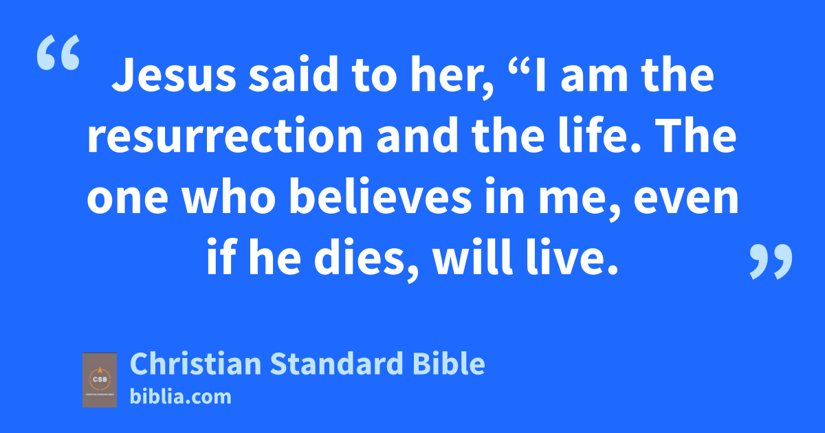25 Jesus said to her, “I amk the resurrection and the life. The one who believes in me,l even if he dies, will live.m 26 Everyone who lives and believes in me will never die.n Do you believe this?”
