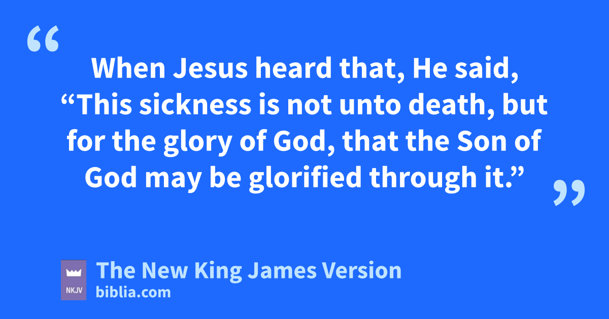 4 When Jesus heard that, He said, “This sickness is not unto death, but for the glory of God, that the Son of God may be glorified through it.”