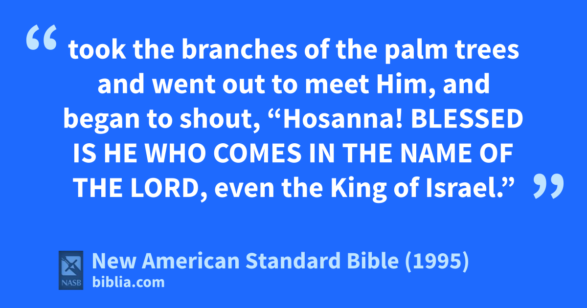 13 took the branches of the palm trees and went out to meet Him, and began to shout, “aHosanna! Blessed is He who comes in the name of the Lord, even the bKing of Israel.”