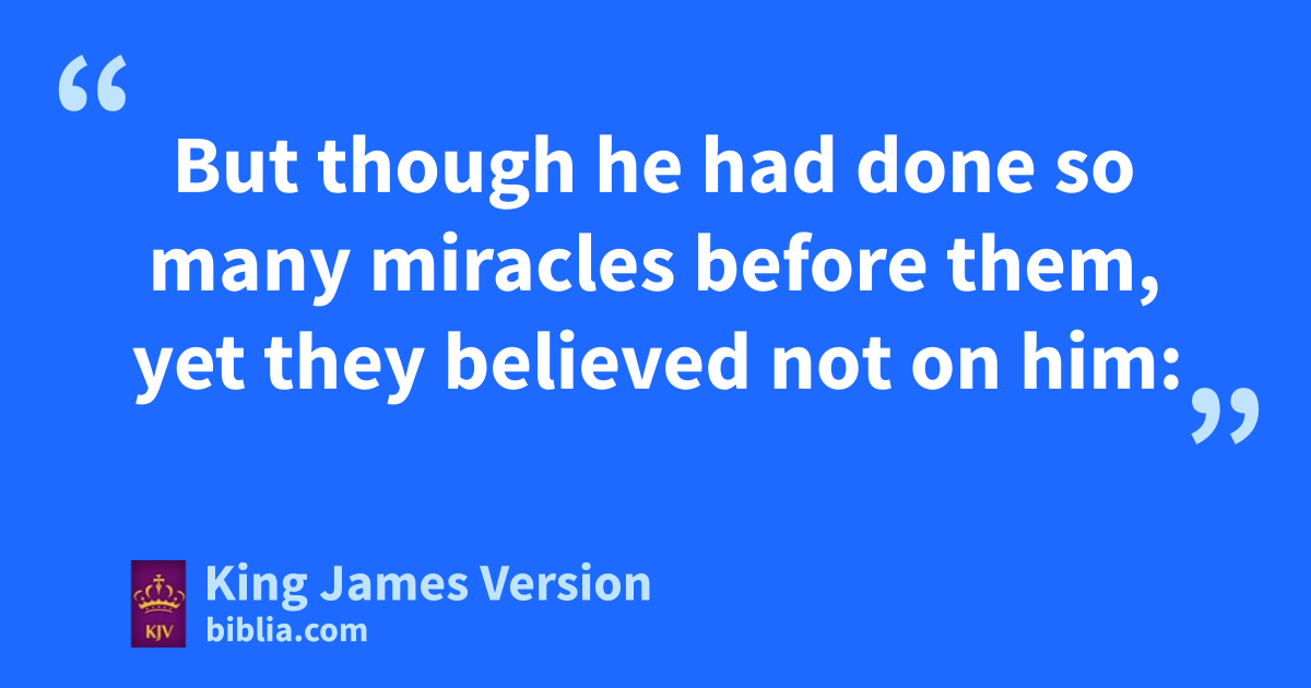 37 But though he had done so many smiracles before them, yet they believed not on him: 38 That the saying of Esaias the prophet might be fulfilled, which he spake, Lord, twho hath believed our report? and to whom hath the arm of the Lord been revealed? 39 Therefore they could not believe, because that Esaias said again, 40 uHe hath blinded their eyes, and xhardened their heart; that they should not see with their eyes, nor understand with their heart, and be converted, and I should heal them. 41 These things said Esaias, ywhen he zsaw his glory, and spake of him. 42 Nevertheless among athe chief rulers also bmany believed on him; but cbecause of the Pharisees they did not confess him, lest dthey should be put out of the synagogue: 43 For they loved ethe praise of men more than the praise of God.