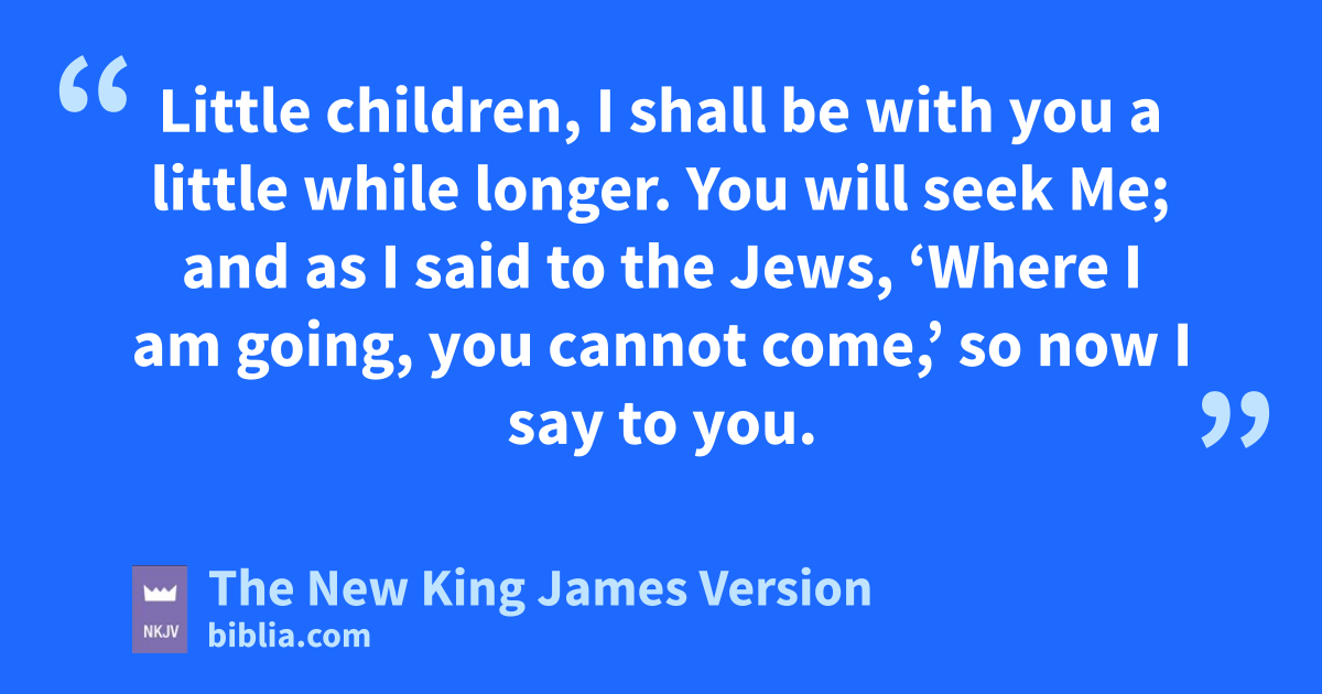 31 So, when he had gone out, Jesus said, f“Now the Son of Man is glorified, and gGod is glorified in Him. 32 If God is glorified in Him, God will also glorify Him in Himself, and hglorify Him immediately. 33 Little children, I shall be with you a ilittle while longer. You will seek Me; jand as I said to the Jews, ‘Where I am going, you cannot come,’ so now I say to you. 34 kA new commandment I give to you, that you love one another; as I have loved you, that you also love one another. 35 lBy this all will know that you are My disciples, if you have love for one another.”