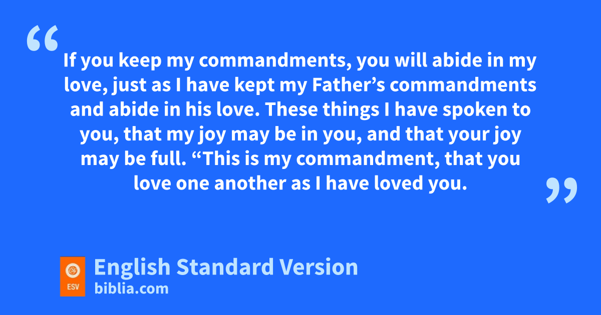 12 p“This is my commandment, that you love one another as I have loved you. 13 qGreater love has no one than this, rthat someone lay down his life for his friends. 14 You are smy friends tif you do what I command you. 15 uNo longer do I call you servants,1 for the servant does not know what his master is doing; but I have called you friends, for xall that I have heard from my Father yI have made known to you. 16 You did not choose me, but zI chose you and appointed you that you should go and abear fruit and that your fruit should abide, so that bwhatever you ask the Father in my name, he may give it to you. 17 These things I command you, cso that you will love one another.