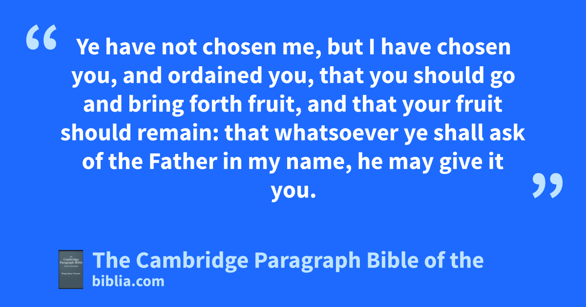 XV. I am athe true vine, and my Father is the husbandman. 2 bEvery branch in me that beareth not fruit he taketh away: and every branch that beareth fruit, he purgeth it, that it may bring forth more fruit. 3 Now cye are clean through dthe word which I have spoken unto you. 4 eAbide in me, and I in you. As the branch cannot bear fruit of itself, except it abide in the vine; no more can ye, except ye abide in me. 5 I am the vine, fye are the branches: eHe that abideth in me, and I in him, the same gbringeth forth much fruit: for * without me ye can do nothing. 6 If a man abide not in me, he is cast forth as a branch, and his withered; and imen gather them, and ijcast them into the fire, and ithey are burned. 7 kIf ye abide in me, and dmy words abide in you, lye shall ask what ye will, and it shall be done unto you. 8 mHerein is my Father glorified, that ye bear much fruit; kso shall ye be my disciples. 9 As the Father hath loved me, so have I loved you: continue ye in nmy love. 10 oIf ye keep my commandments, ye shall abide in my love; even as I have kept pmy Father’s commandments, and abide in his love.