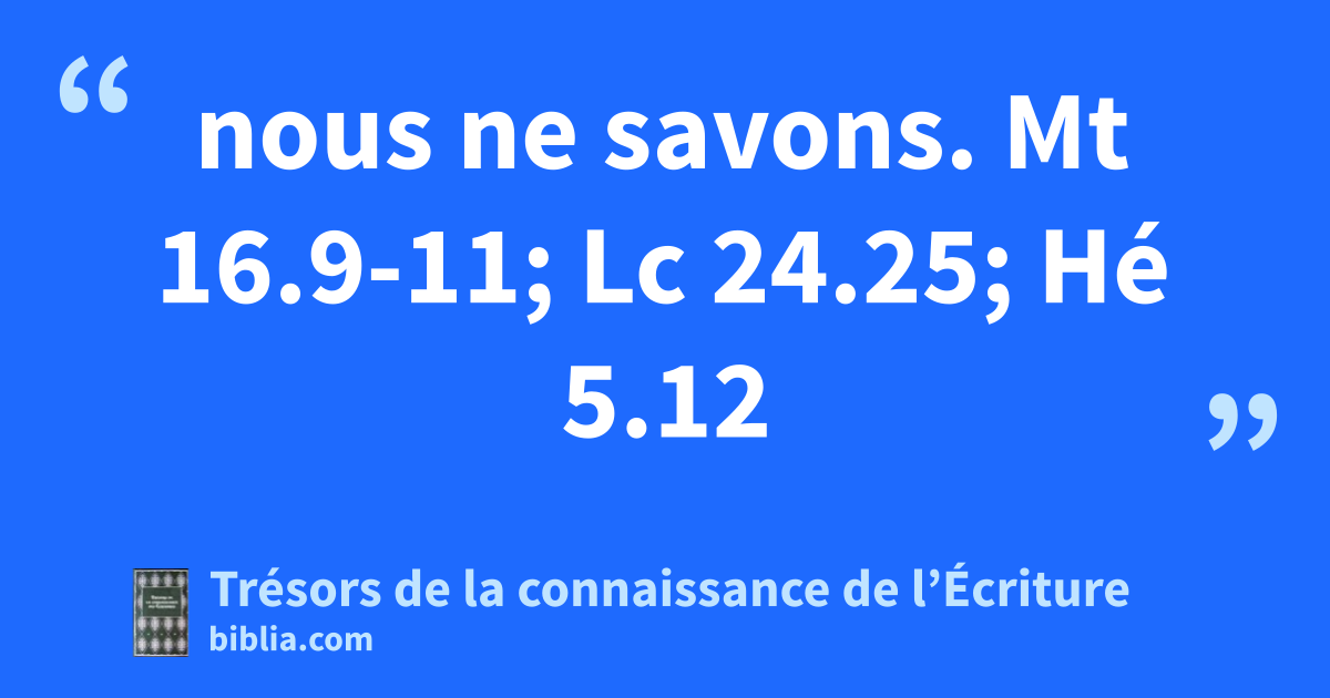 nous ne savons. Mt 16.9-11; Lc 24.25; Hé 5.12