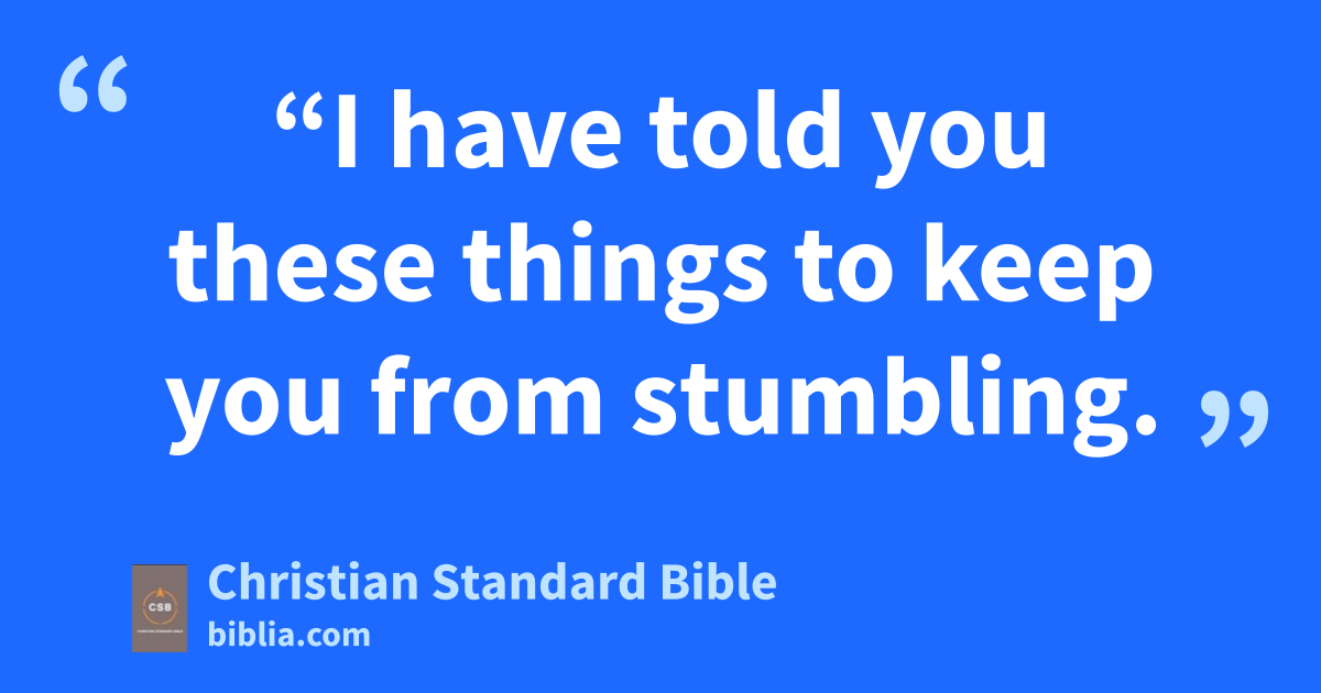 16 “I have told you these things to keep you from stumbling. 2 They will ban you from the synagogues.ad In fact, a time is coming when anyone who kills you will think he is offering serviceae to God. 3 They will do these things because they haven’t knownaf the Father or me. 4 But I have told you these things so that when their timeB comes you will rememberag I told them to you. I didn’t tell you these things from the beginning, because I was with you. 5 But now I am going awayah to him who sent me, and not one of you asks me, ‘Where are you going?’ai 6 Yet, because I have spoken these things to you, sorrow has filled your heart. 7 Nevertheless, I am telling you the truth.aj It is for your benefit that I go away, because if I don’t go away the Counselor will not come to you. If I go, I will send him to you.ak 8 When he comes, he will convict the world about sin, righteousness, and judgment: 9 About sin, because they do not believe in me; 10 about righteousness, because I am going to the Fatheral and you will no longer see me; 11 and about judgment,am because the ruler of this worldan has been judged.ao