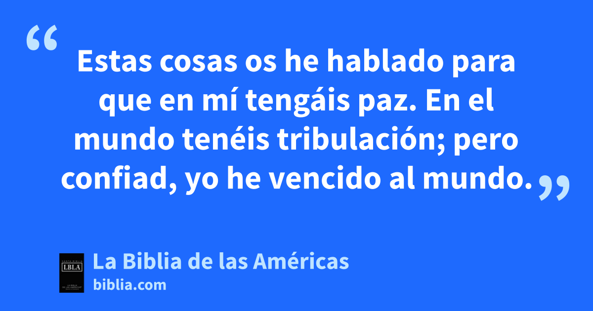 33 Estas cosas os he hablado para que en mí tengáis paza. En el mundo tenéis tribulaciónb; pero confiad1c, yo he vencido al mundod.