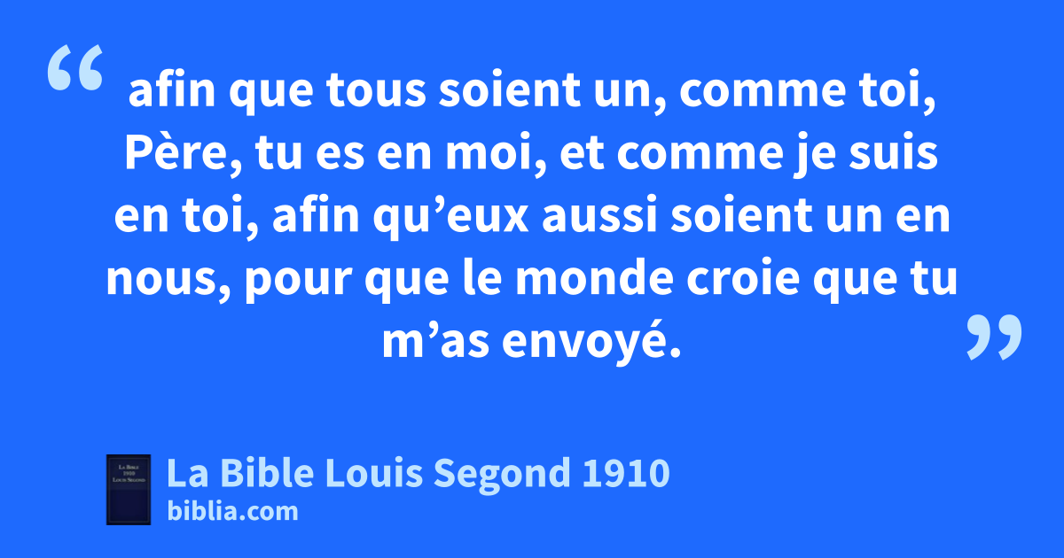 2bselon que tu lui as donné pouvoir sur toute chair, afin qu’il accorde la vie éternelle à tous ceux que tu lui as donnés. 3Or, cla vie éternelle, c’est qu’ils te connaissent, toi, le seul vrai Dieu, et celui que tu as envoyé, Jésus-Christ. 4dJe t’ai glorifié sur la terre, ej’ai achevé l’oeuvre que tu m’as donnée à faire. 5Et maintenant toi, Père, glorifie-moi auprès de toi-même de la gloire fque j’avais auprès de toi avant que le monde fût. 6J’ai fait connaître ton nom aux hommes que tu m’as donnés du milieu du monde. Ils étaient à toi, et tu me les as donnés; et ils ont gardé ta parole. 7Maintenant ils ont connu que tout ce que tu m’as donné vient de toi. 8Car je leur ai donné les paroles que tu m’as données; et ils les ont reçues, get ils ont vraiment connu que je suis sorti de toi, et ils ont cru que tu m’as envoyé. 9C’est pour eux que je prie. Je ne prie pas pour le monde, mais pour ceux que tu m’as donnés, parce qu’ils sont à toi; — 10et htout ce qui est à moi est à toi, et ce qui est à toi est à moi; — et je suis glorifié en eux. 11Je ne suis plus dans le monde, et ils sont dans le monde, et je vais à toi. Père saint, garde en ton nom ceux que tu m’as donnés, afin qu’ils soient un comme nous. 12iLorsque j’étais avec eux dans le monde, je les gardais en ton nom. jJ’ai gardé ceux que tu m’as donnés, et aucun d’eux ne s’est perdu, sinon le fils de perdition, kafin que l’Écriture fût accomplie. 13Et maintenant je vais à toi, et je dis ces choses dans le monde, afin qu’ils aient en eux ma joie parfaite. 14Je leur ai donné ta parole; let le monde les a haïs, parce qu’ils ne sont pas du monde, comme moi je ne suis pas du monde. 15Je ne te prie pas de les ôter du monde, mais de les préserver du mal. 16Ils ne sont pas du monde, comme moi je ne suis pas du monde. 17Sanctifie-les par ta vérité: mta parole est la vérité. 18nComme tu m’as envoyé dans le monde, je les ai aussi envoyés dans le monde. 19oEt je me sanctifie moi-même pour eux, afin qu’eux aussi soient sanctifiés par la vérité. 20Ce n’est pas pour eux seulement que je prie, mais encore pour ceux qui croiront en moi par leur parole, 21pafin que tous soient un, comme toi, Père, tu es en moi, et comme je suis en toi, afin qu’eux aussi soient un en nous, pour que le monde croie que tu m’as envoyé. 22Je leur ai donné la gloire que tu m’as donnée, afin qu’ils soient un comme nous sommes un, — 23moi en eux, et toi en moi, — afin qu’ils soient parfaitement un, et que le monde connaisse que tu m’as envoyé et que tu les as aimés comme tu m’as aimé. 24qPère, je veux que là où je suis ceux que tu m’as donnés soient aussi avec moi, afin qu’ils voient ma gloire, la gloire que tu m’as donnée, parce que tu m’as aimé avant la fondation du monde. 25Père juste, rle monde ne t’a point connu; mais moi je t’ai connu, set ceux-ci ont connu que tu m’as envoyé. 26Je leur ai fait connaître ton nom, et je le leur ferai connaître, afin que l’amour dont tu m’as aimé soit en eux, et que je sois en eux.