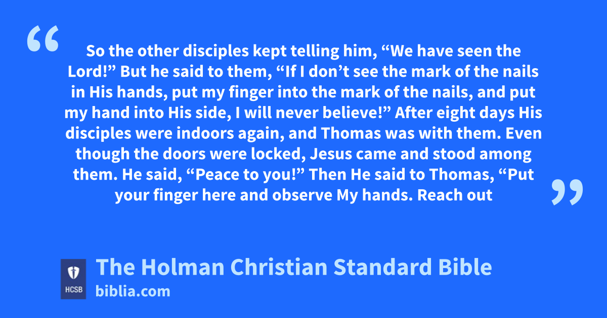 24 But one of the Twelve, Thomas y (called “Twin”), was not with them when Jesus came. 25 So the other disciples kept telling him, “We have seen the Lord!”